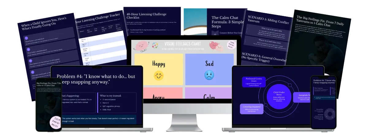The Big Feelings Fix works best for ages 2–7, but many parents use it successfully with kids up to age 10. You’ll get: Age-specific scripts, visual tools for younger kids, language tweaks for older kids. The system adapts to your child — not the other way around.