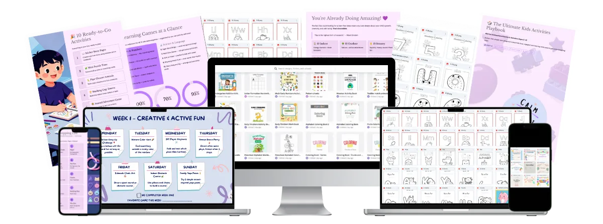 A complete, plug-and-play screen-free activity system for kids ages 2–8.